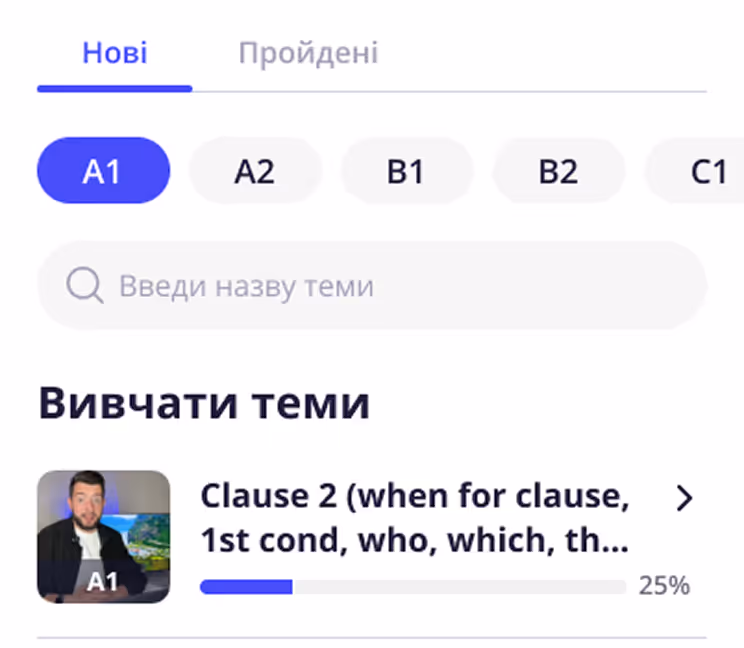 Проходиш тести для закріплення, або переходиш на наступну тему.
